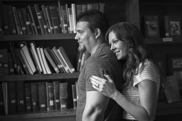 Pease Public Library was the perfect place for their engagement photo shoot because Jacquelyn is a librarian, and Edward is an author (Mesmer’s Disciple). (If you’ve read his book and are dying for more—I got the inside scoop: he’s working on a sequel).