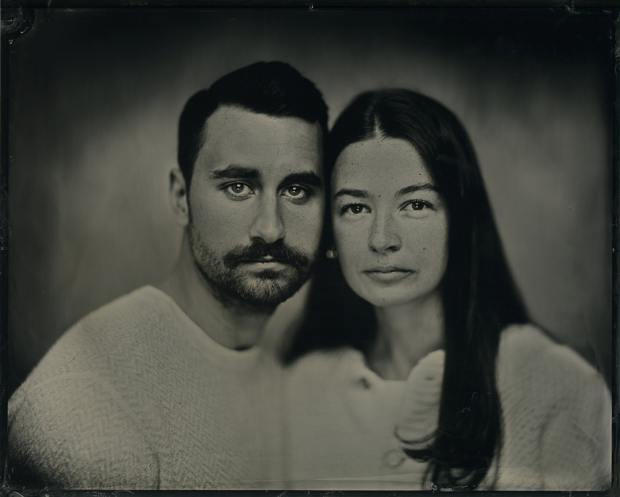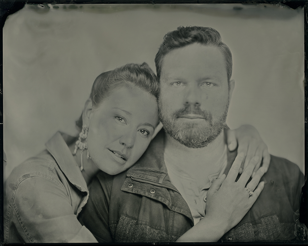 Kieran and Neal had been looking forward to their couple’s tintype portrait experience since they booked their session last winter. Kieran took an interest in tintypes when she studied vintage photographic arts in college. She was intrigued by the unique, almost ghostly, nature of the images. A tintype (also known as a ferrotype) is a