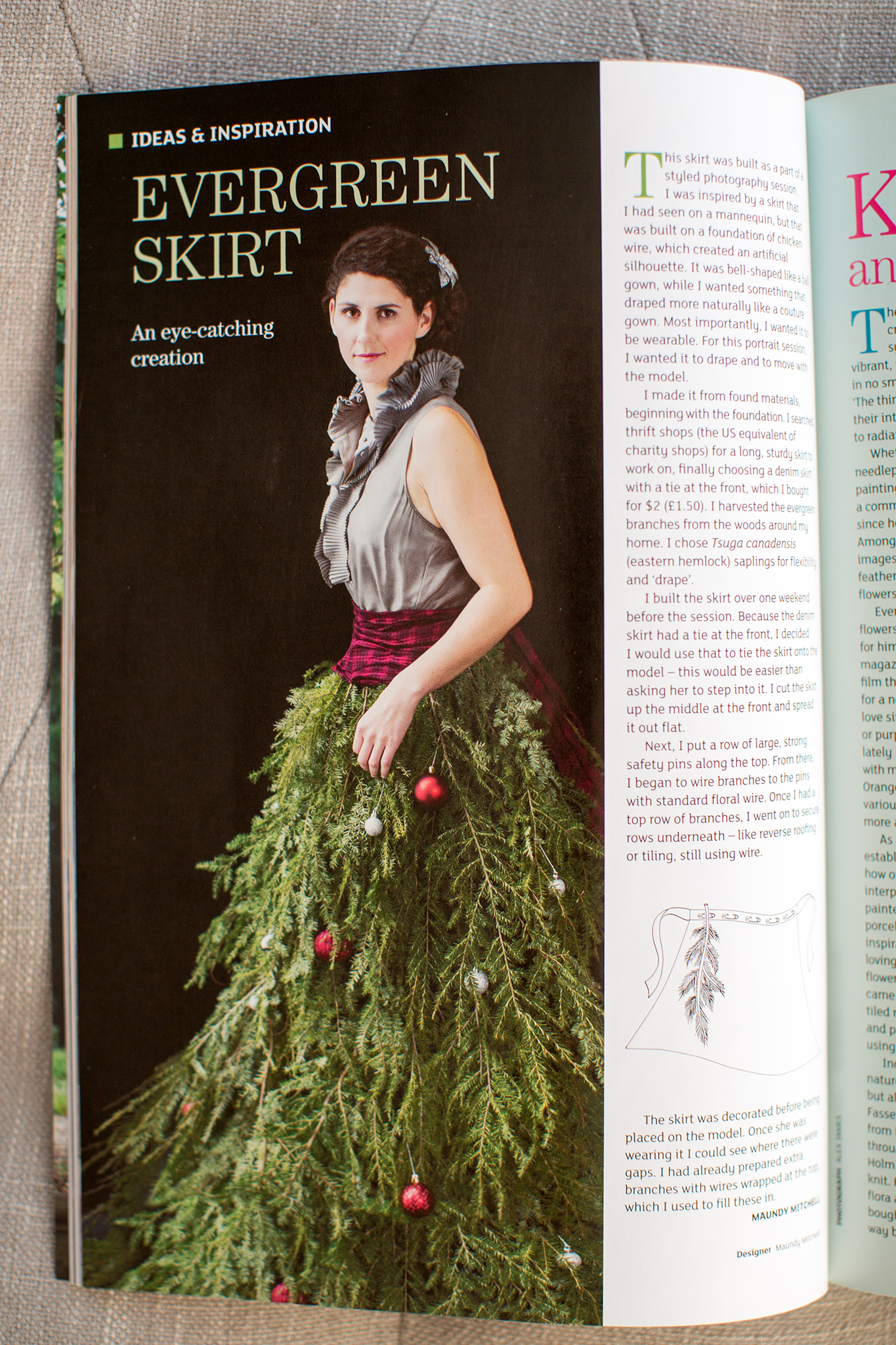 It’s always special to see my work in print. My portrait of Erica in a Christmas Tree Skirt, along with my tutorial for making the skirt, is published in the Winter 2016 issue of The Flower Arranger. Based in London and published quarterly, The Flower Arranger is the top international trade magazine for floral designers. You