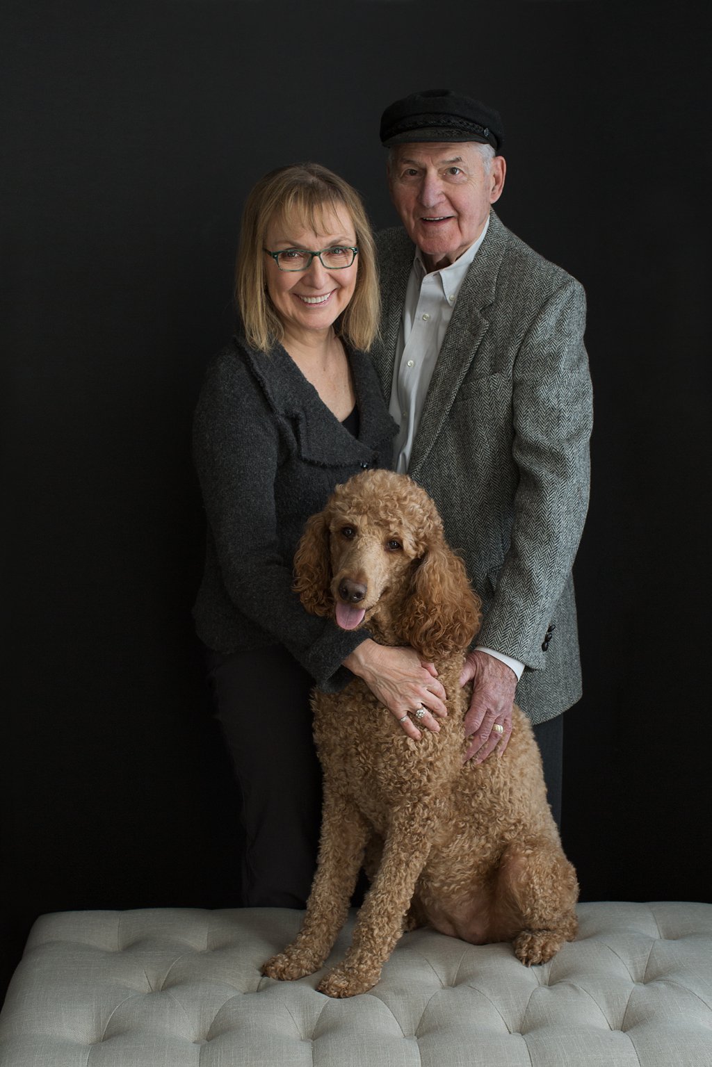 Paulette is an accomplished artist who wanted new portraits for her website. She also wanted some classic family portraits with her husband, Dick, and their dog, Lucy, who both joined us later. They asked me to hold off on publishing this post until after Christmas. They gave some wall portraits to their family as special gifts and