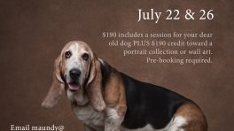 A Special Session for Your Dear Old Dog So many people have asked for a special, private portrait session for their old dog that I’m pleased to introduce Old Dog Days on July 22 & 26, 2024. Old Dog Days sessions will be held at my cool, comfortable, and dog-friendly studio at 62 Main Street,