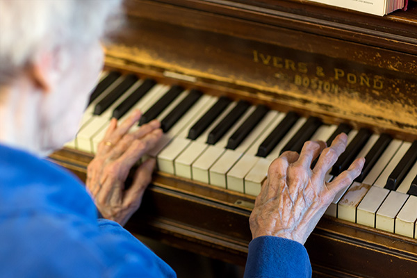 Virginia hadn’t played the piano since she was a child. By the time she became a resident at the Belknap County Nursing Home, she had forgotten much about her own life. Then one day she sat down at this piano and began to play. She plays it almost daily now. True friends are people whom