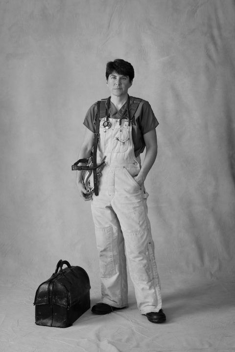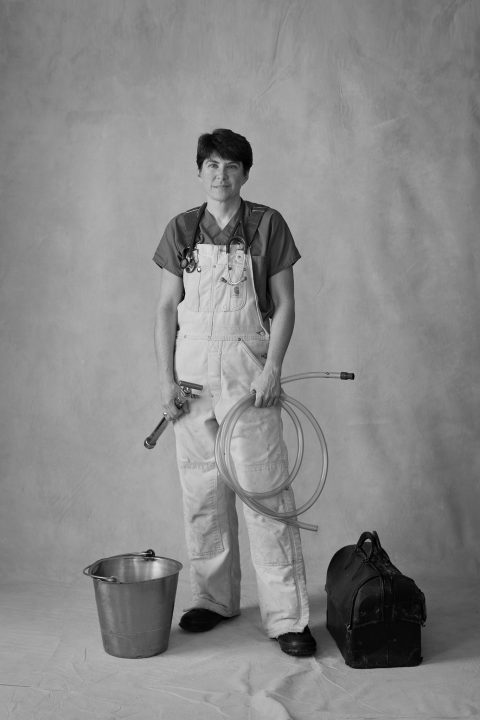 Ellyn helps animals in the office, she performs surgery, and she travels to farms to work with large animals.  The job can be tough.  Once, she said, while helping a cow to calve during the winter, her clothes got so wet that she became frozen to the ground.  Another time, she lucked out when a bull who was charging her stumbled and got its horn stuck in the ground, which gave her enough time to draw its blood.
