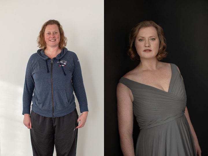 Amy, before and after styling: The portrait experience includes professional hair and makeup styling. It’s a relaxing treat, and there is often a shift in energy–in confidence–when you feel special.