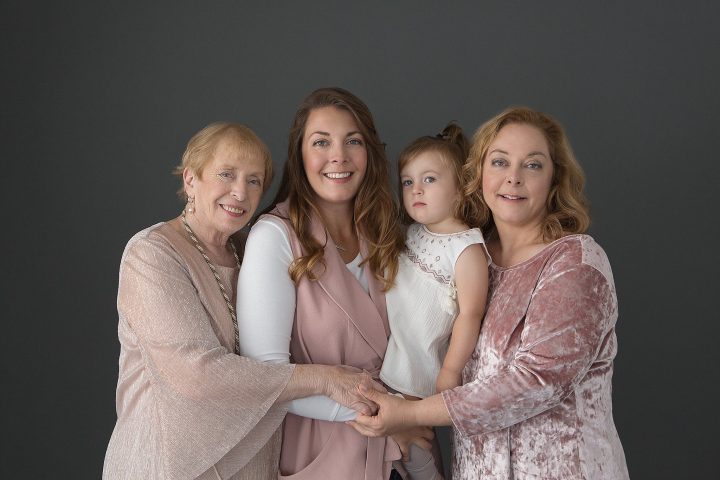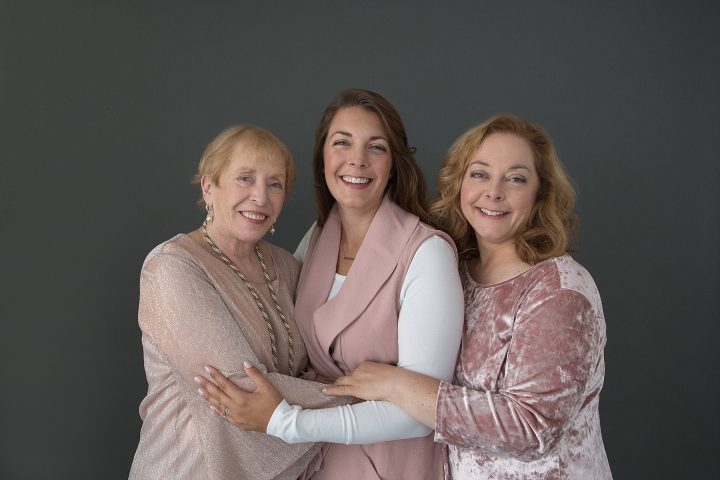 Susan’s mother, Judy, and daughter, Kate, share a birthday. She surprised them with a gift certificate for a special, four-generation portrait session. They were thrilled and we started planning right away. Their session day began with professional hair and makeup styling.